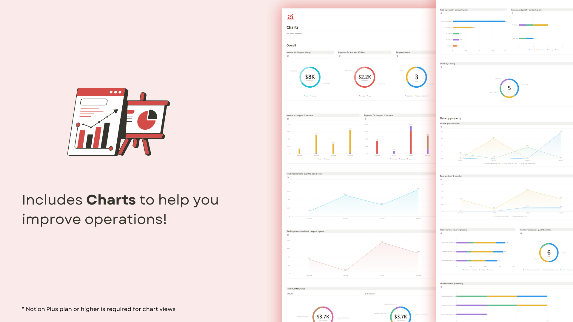 * With Notion Plus plan or higher, you can create/visualize unlimited charts. Free plans are limited to 1 chart (on the entire account). Notion Templates FAQs