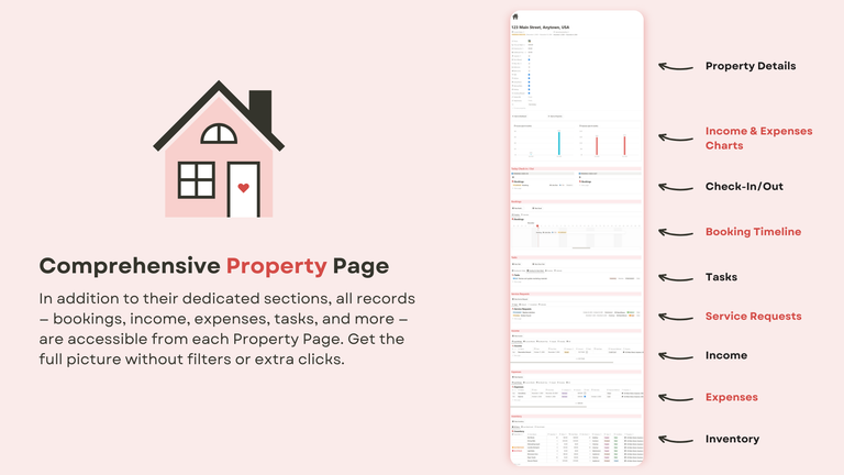 - Linked to bookings, income, expenses, tasks & inventory and maintenance